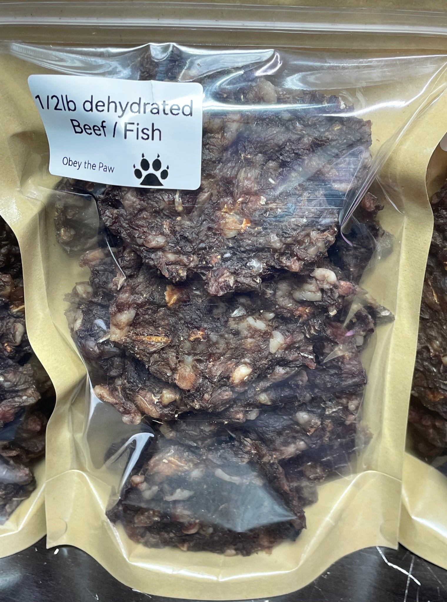 (threaded hearing) Ground & dehydrated, hand pressed into patties.